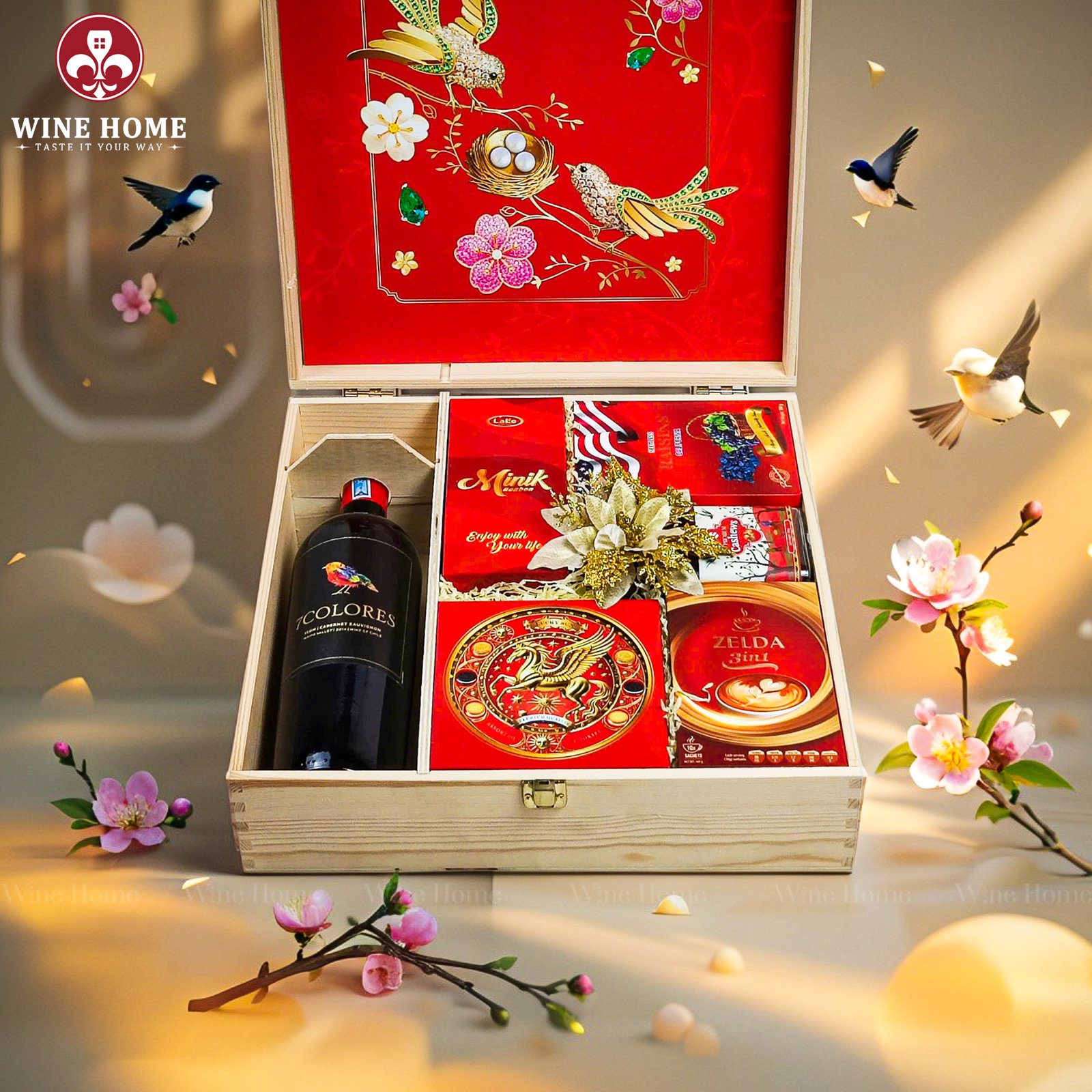 Hộp Quà Tết Xuân Như Ý Hộp Gỗ Đỏ 15 | Quà Tết Cao Cấp 2026 Wine Home